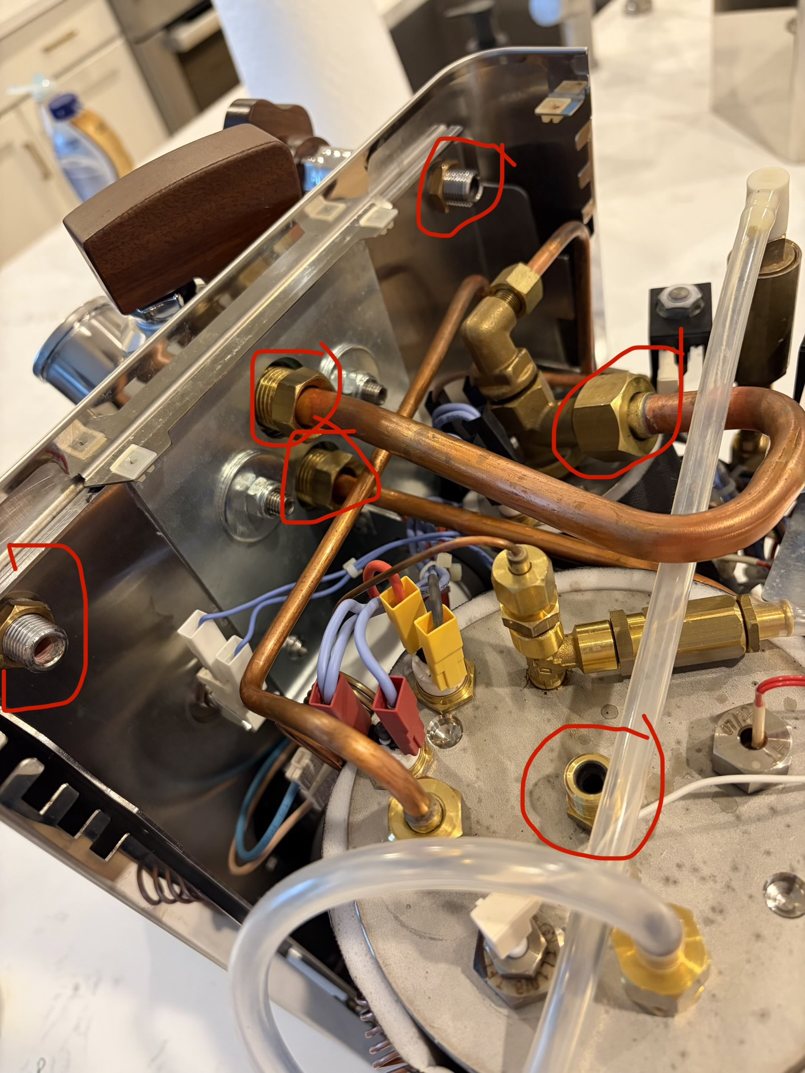 One thing I am certain, is the steam withdrawal tube was corroded and bubbling steam. If I replace the steam withdrawal tube, would that alone solve my problems? Second thing, there is a large amount of powdered oxidation on the floor of the machine right below the steam withdrawal tube. I am pretty sure that is just from the steam withdrawal tube leaking. Also, there is the same residue found on the right side of the machine below the water withdrawal tube, and I have no idea where that particular oxidation is coming from.